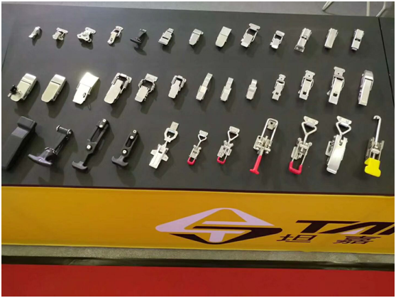 除了磁力夾具外,我們還展出了具有實(shí)用性和設(shè)計(jì)感并存的工業(yè)五金系列產(chǎn)品:搭扣、鉸鏈(合頁)、門配和不銹鋼星形旋鈕等。