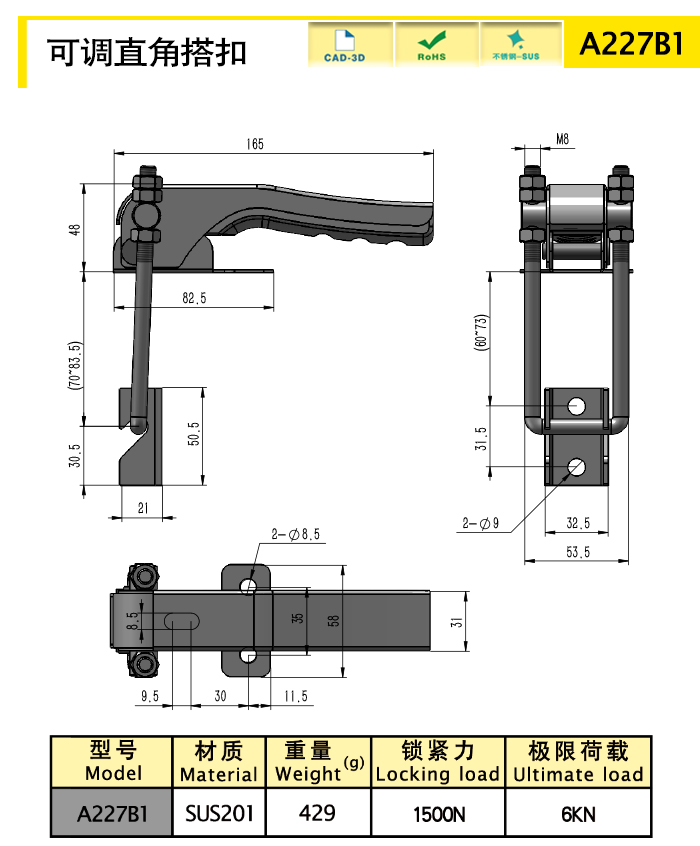 長(zhǎng)度(mm) 長(zhǎng)度(mm) 材質(zhì) 材質(zhì) 重量(g) 鎖緊力(N) 鎖緊力(N) 極限荷載(N) 極限荷載(N) 功能 功能