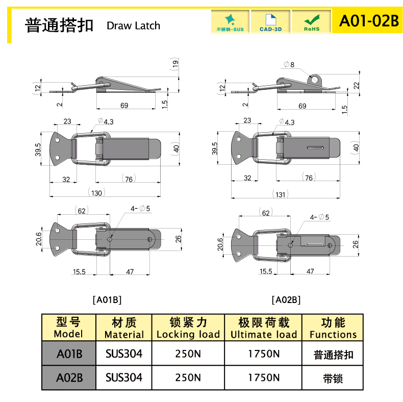 130 SUS304 84.11 250 1750 普通搭扣