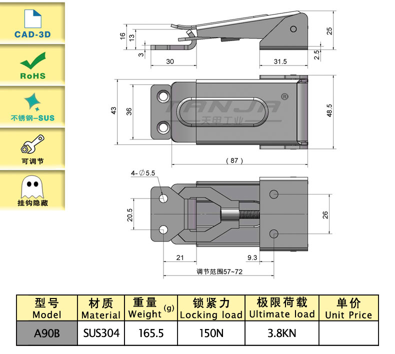 內(nèi)扣式可調(diào)節(jié)搭扣