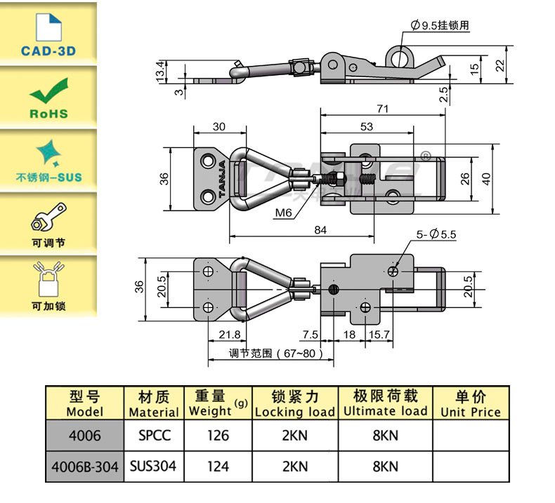 147.4 SPCC 126.11 2000 8000 可調(diào)節(jié),帶鎖