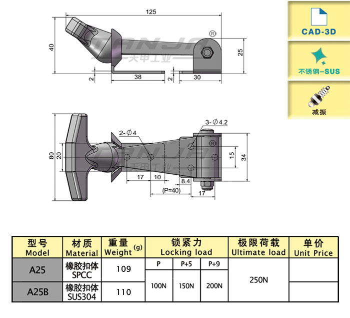優(yōu)質(zhì)橡膠體扣身具有減振功能,可保持對(duì)連接體的彈性預(yù)壓