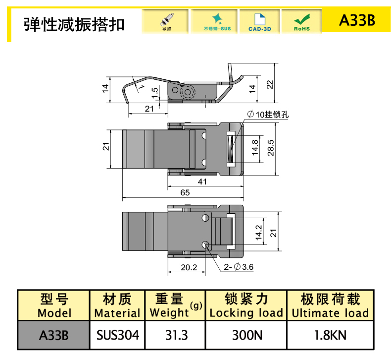 自身的彈性鋼片使搭扣具有預(yù)壓減振功能