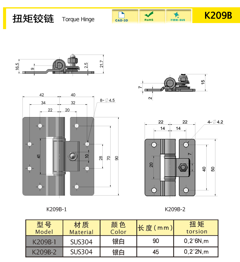可將門(mén)保持在任意角度,可以通過(guò)調(diào)節(jié)螺母改變扭矩值。