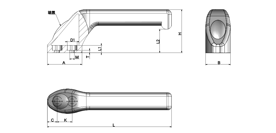 把手主體,聚酰胺(PA),黑色亞光飾面