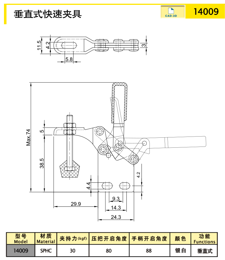 采用機(jī)械四連桿原理而設(shè)計(jì)的一種快速夾持、快速打開機(jī)構(gòu),靈活順暢,不搖擺