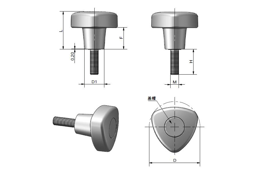 | 型號 | 材質 | 直徑D | D1 ![]() | M ![]() | F ![]() | 高度H ![]() | 特點 | 重量(g) | 3D圖紙 | 選購 | |||