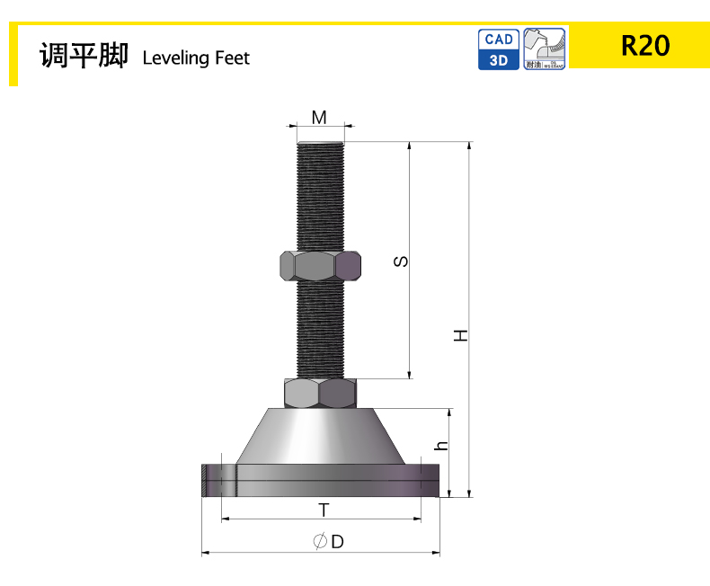 | R20-100-M20-120-BK | S45C | 100 | M20 | 120 | 160 | 30 | / | 11.7 | 82 | 電泳黑 | 下載 | ||||