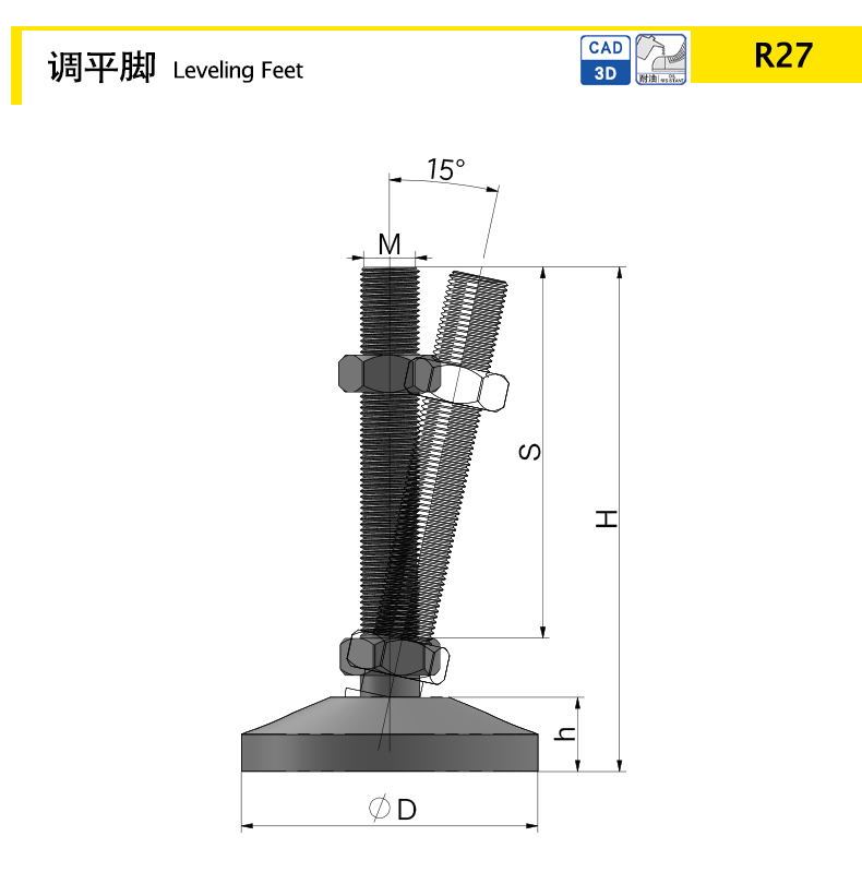 螺桿提供15度萬向調(diào)整,解除角度公差,使機(jī)器設(shè)備平穩(wěn)度更佳