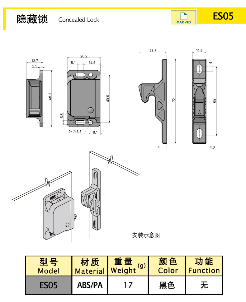 拉動(dòng)開啟,按壓鎖定,側(cè)裝(內(nèi)部安裝)