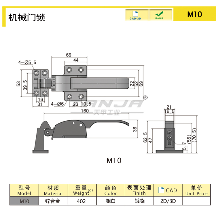 鎖舌為滾輪結(jié)構(gòu),前鉤高度可調(diào)